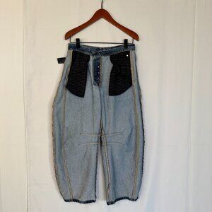 The We The Free Good Luck Mid-Rise Barrel Jeans from Free people are constructed in 57% Cotton, 43% lyocell denim twill fabric in deep end wash a dark blue subtle acid wash colorway. They feature a technically high rise designed to be worn mid rise on the hips, button fly closure, belt loops, 5 pocket design, flattering seaming at the waist back waist to mack you bum look awesome, extra side seam paneling and knee spin tucks that create a relaxed barrel leg ankle length silhouette. These are boho, relaxed, coastal cowgirl, southwestern, western, prairie, avant garde, it girl vibes.