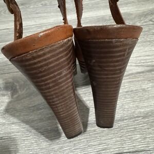 Lucky Brand Women's Brown Leather Heels Sz 8.5M Chunky Y2K Slingback Platform