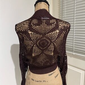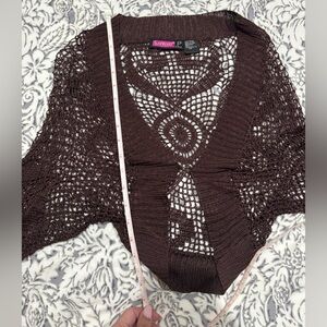Say What? Dark Brown Crochet Women cardigan size L