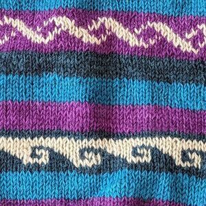 Vintage Blue Purple and white Abstract handmade knit wool / wool like material Crewneck Sweater Unisex.