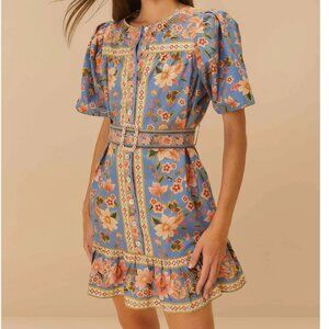 Farm Rio Blue Superbloom Tapestry Organic Cotton Mini Dress Like New