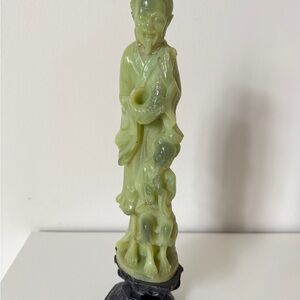 Enhance your space with this elegant green figurine sculpture. Its soothing color adds a touch of tranquility to any decor.