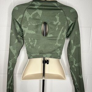 Gymshark Adapt Camo Seamless Long Sleeve Crop Top - Savanna | Green XS