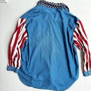 Vintage 90's Denim Womens Shirt Size 26 American Flag Embroidered Bear USA