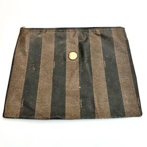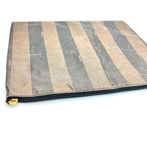 Fendi Black and Brown Striped Toiletry Bag Clutch Pouch