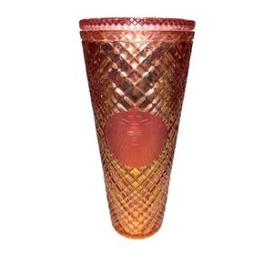 The Starbucks 24 oz Iridescent Cold Cup in Rose Gold is a collectible item perfect for coffee and tea enthusiasts. This festive holiday cup features the iconic Starbucks brand with a pink color theme, making it a stylish and unique addition to any collection. With its large size and eye-catching design, this cup is sure to be a standout piece for any Starbucks lover.