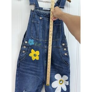 Women's Distressed Denim Overalls Floral Hand Painted Print Retro Y2K Sz Small