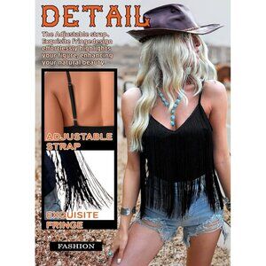 🎸 Distinctive Design Details: Featuring a flattering V-neck and adjustable spaghetti straps, our fringe tank top is designed with meticulous attention to detail. The playful tassels add a bohemian charm to your outfit, enhancing the festive vibe of your concert or festival ensemble.