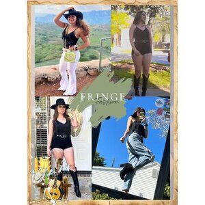 Women's Black Fringe Tank Top Western Festival Clothing Cowgirl V Neck Outfits