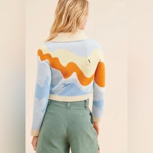 House of Sunny Souvenir Cardigan Sweater Ivory Blue Multi Size 4