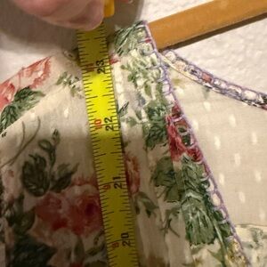 Charming floral blouse with delicate lace details. Features a button-down front and long sleeves. Perfect for a romantic look. No flaws noted
