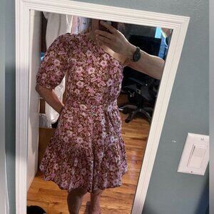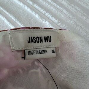 Jason Wu size Medium, one shoulder (goes over right shoulder) floral print cotton blend belted mini dress. Belt s a D-ring with seaming accents. it has Pleated 3/4 puff sleeves, fitted bodice, has adjustable belt around waist D-ring buckle. Classic fit and flare shape with an A-line shape with a flirty ruffled hem make this the perfect summer dress. It’s fully lined has Concealed side zip closure, and the elastic stretch waistband is concealed by belt, and has an easy stretch to 15-16”. Perfect for brunch, wedding showers or summer ceremonies. size M, colors are milk chocolate brown/lavender/white. See all photos for detail. Sold at Bloomingdale's and Saks Fifth Avenue, Jason Wu designed Michelle Obama's inauguration gown among other pieces. He also designed for other celebrities: Reese Witherspoon, Julianne Moore, Kerry Washington, Christy Turlington, and Brie Larson to name a few.