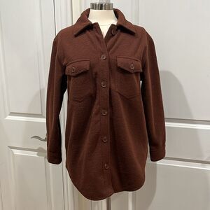 New! Joie Fleece Shacket Brown Neutral Button Down Women's Size Medium