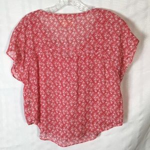 Cute, Floral like print Hollister Pink & White Sheer Top. Size XS. Please See All Pictures For Approximate Measurements. Thank you for shopping my closet.🌸DD