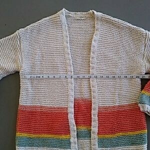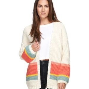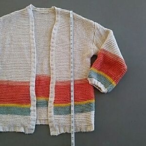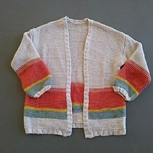 Marine Layer Karolina Rainbow Striped Open Front Cardigan Sweater. Size Small, please refer to measurement photos. Oversized. Pre loved in good condition. Light pilling throughout. Cuff was mended in third to last photo. A lot of life left!