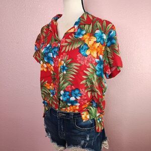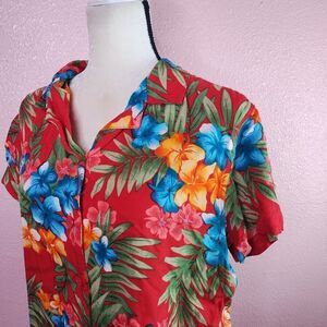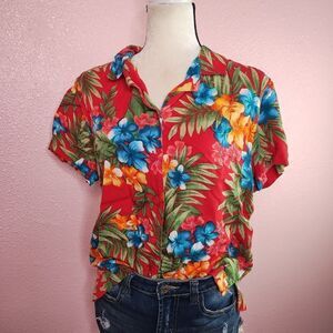 Vintage Short Sleeve Tropical Button Up Shirt Large