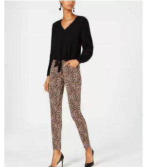 INC Skinny Jeans Womens 16 Cheetah Print Stretch 5-Pocket Denim Copper Button