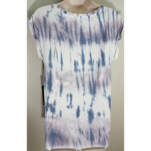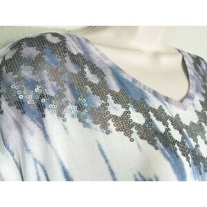 Womens Rock & Republic Sequin Tie Dye Tee Blue Silver Lilac Cap Sleeve Sz M NWT