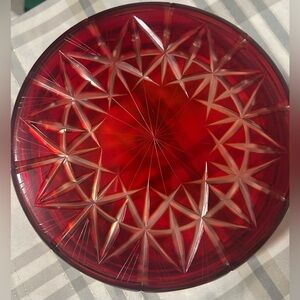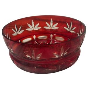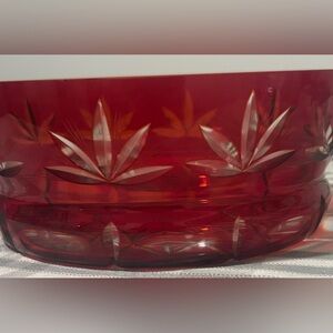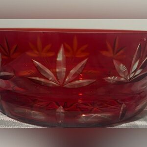 VINTAGE RUBY RED GLASS BOWL WITH CUT GLASS DESIGN