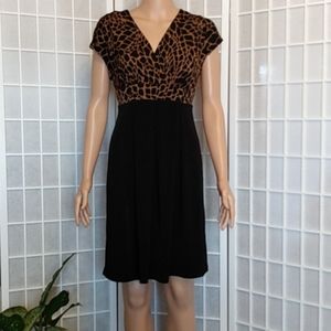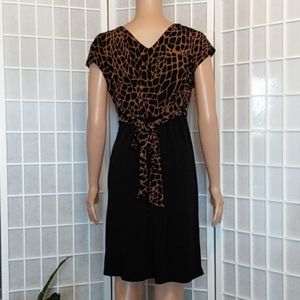 Enfocus Studio Midi Dress – Black/Brown Animal Print – V-Neck – 8