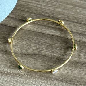 This elegant bangle bracelet features a sleek gold design with striking green accents. Perfect for adding a touch of sophistication to any outfit. Stainless steel, 18K gold plated