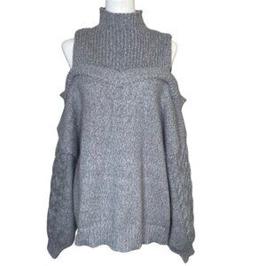 Plus Size 2X Cold Shoulder Fisherman Knit Mock Neck Sweater Chunky Bell Sleeve