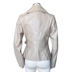 Cache Tan Leather Fitted Jacket W/Detachable Fur Collar Size 10 NWT Rare Find!! Unused/unworn pristine condition. The beloved brand known for chic styles with playful attitude created this gorgeous leather head turner! This is an extremely rare find from a bygone brand. A Cache treasure!!! Bring an edge to your everyday style with this fitted leather belted jacket with removable soft fur collar serving two looks in one!