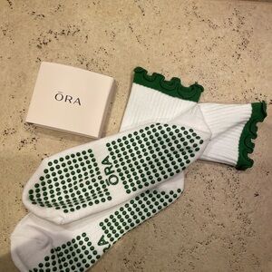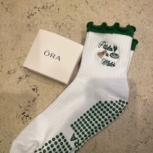Elevate your Pilates routine with these ŌRA grip socks, designed for comfort, stability, and style. Featuring a charming “Pilates & Matcha” embroidery and non-slip grip soles, these socks are perfect for studio workouts or at-home practice.