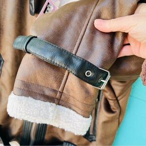 Faux Shearling Aviator Jacket Vintage Style Wild Fable Brown SIZE XL NWT