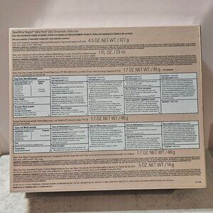 4.5 oz (cleanser), 1 fl. oz (serum), 1.7 oz (day/night creams), 0.5 oz (eye cream)