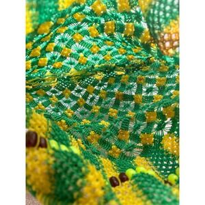 Handmade Macrame Beaded Tote Bag Unique Design Green Yellow