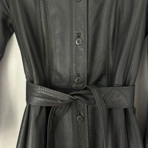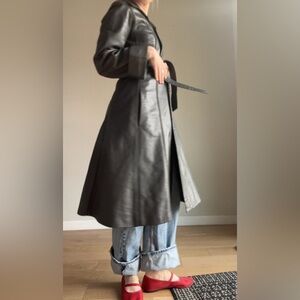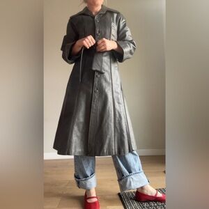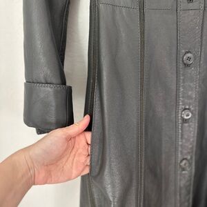 A-Line Mid-Calf Coat. Lining - Full. Material - 100% Leather. Color – Gray. may show signs of use or wear.