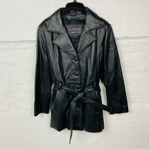 LEATHER LIMITED black genuine leather wrap jacket size medium