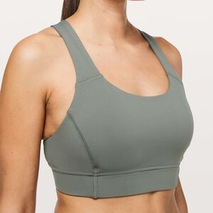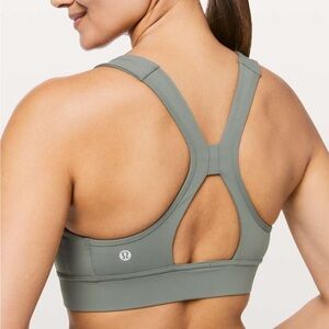 Lululemon Power Through Sports Bra Grey Sage Green Medium Support Size 6