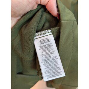 The Lauren Ralph Lauren Exclusive Women’s Green Interior Quilted Jacket in size Large is a stylish and versatile outerwear piece perfect for the winter, fall, and spring seasons. Made with a softshell fleece outer shell and a quilted polyester lining, this mid-length jacket features a solid green color with a zip closure and long sleeves. The brand accents and regular fit make it suitable for casual, business, and travel occasions, adding a touch of sophistication to your wardrobe. Remember to dry clean only to maintain its quality and appearance.