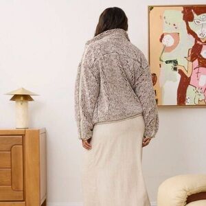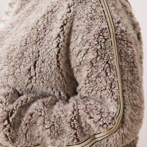 Grey gray fuzzy teddy fleece faux fur soft warm cozy winter fall layer casual day office outdoor sporty preppy neutral jacket coat sweatshirt collar loose oversized