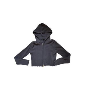 Brandy Melville Black Knit Cropped Zip Up Hoodie Women’s One Size