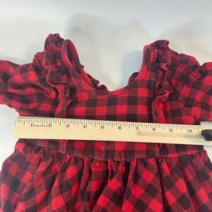 Remie Girl Buffalo Check Twirl Dress 3/4 Sleeve Ruffle Low Back Girls