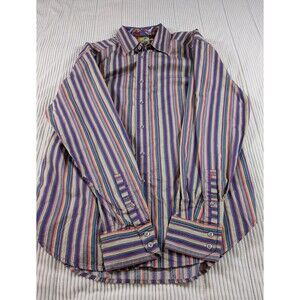 Robert Graham Shirt Mens L Multicolor Stripe Flip Cuff Long Sleeve