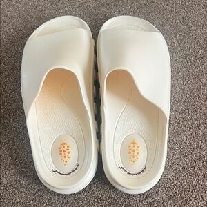 Step into comfort with these stylish white slide sandals. Perfect for any casual outing.
