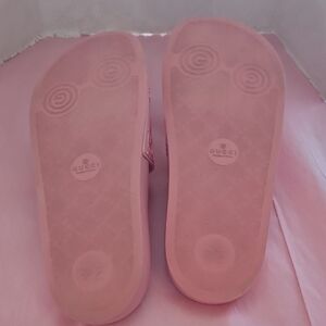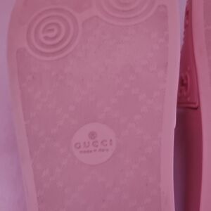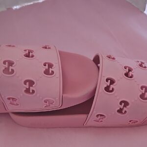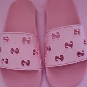 Elegant blush slides with signature Gucci emblem. Ideal for relaxed outings. Love these so pretty, Please look at all the pictures and message me with any questions ๐