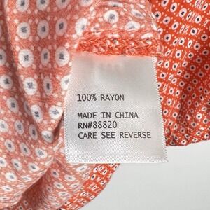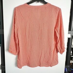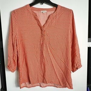 Anne Carson Women's Large Orange Blue White Geometric Print 3/4 Sleeve Blouse