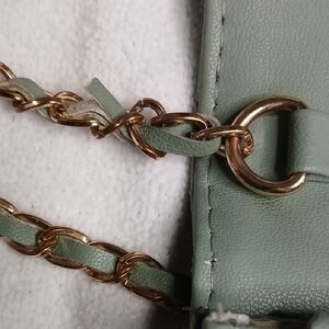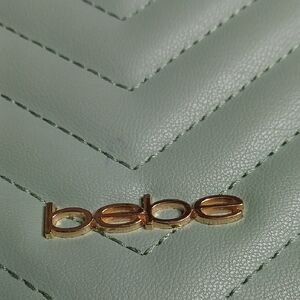 Bebe Sophia small quilted crossbody. Mint/ sage green color with pleather woven gold chain strap. Perfect for any outfit.