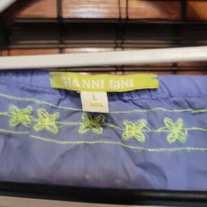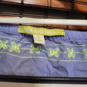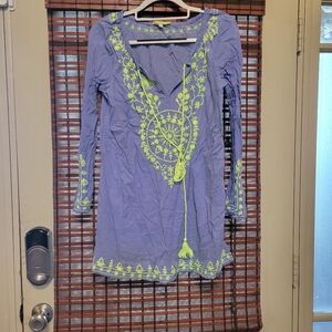 Stylish purple dress featuring intricate green embroidery. Perfect for casual outings.