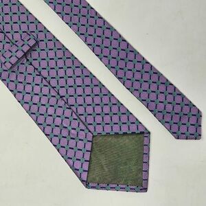 TURNBULL & ASSER SILK TIE PURPLE BLUE GREEN GEOMETRIC CHECKER SATIN 3.5" X 57"