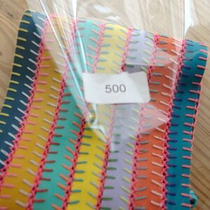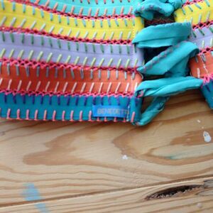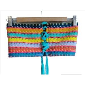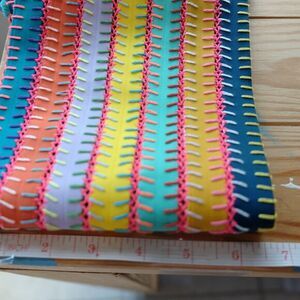 Straps of lycra with multicolored stitching and adjustable cross-back tie. Retails for $150
