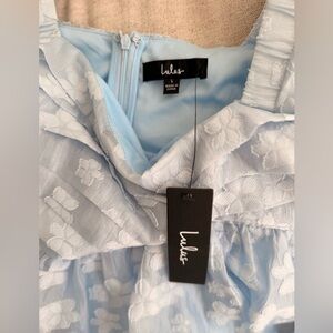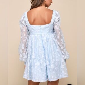 Lulus Radiantly Cute Light Blue Burnout Floral Pleated Mini Dress size L