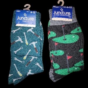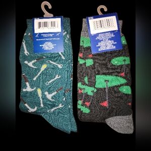 Step up your sock game with 's stylish men's socks. Featuring a fun design with tools and another with golf motifs, these socks add a playful touch to any outfit. Perfect for comfort and style.
