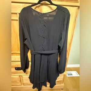 Black Long Sleeve Wrap Dress Belted Plus Size 2X Midi