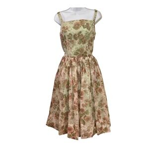 Vintage 1950s Floral Botanical Dress Garden Cottagecore Fit Flare Fairy Ethereal